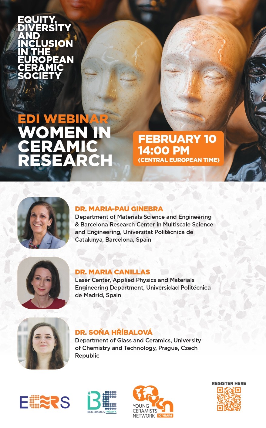 The ECerS EDI (Equity, Diversity & Inclusion) Committee is pleased to invite you to its 1st webinar focused on Women in Ceramic Research to celebrate the International Day of Women and Girls in Science.